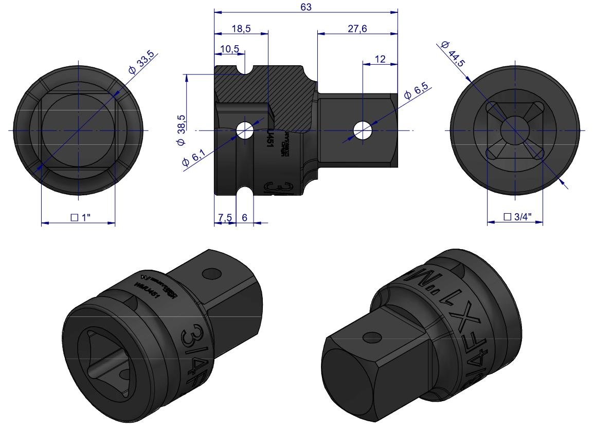Adapter do kluczy udarowych 3/4 na 1″ Waryński [WMU451]