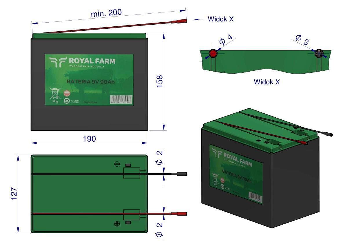 Bateria 90Ah 9V 6AS6 ROYAL FARM 201031012 [RF-10200104]