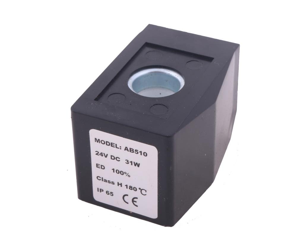 Cewka elektrozaworu 16mm 30W 24V DC. Idealnie nadaje się do zastosowań w hydraulice siłowej i pneumatyce, jeśli wymiary i parametry cewki są zgodne z parametrami danej aplikacji: gabaryty, napięcie, moc, inne.