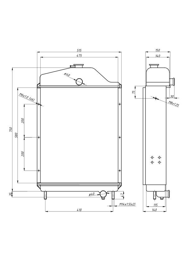 Chłodnica miedziana 1212, 1214 RM bez turbo dolne mocowanie 6-cylindrowy C-385 [86013905RM]