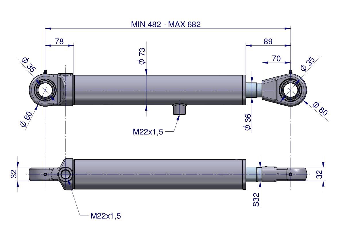 Cylinder hydrauliczny – siłownik dwustronny CJ2F-63/36/200 (90 stopni) Waryński
