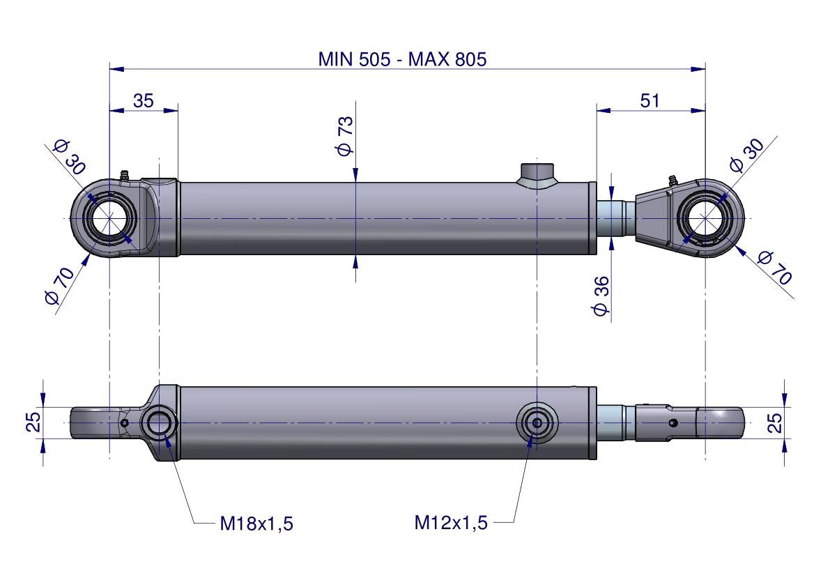 Cylinder hydrauliczny – siłownik dwustronny pomocniczy podnośnika (SMT2CJ.63.36.300; 89409402) C-385 6-cyl. Waryński