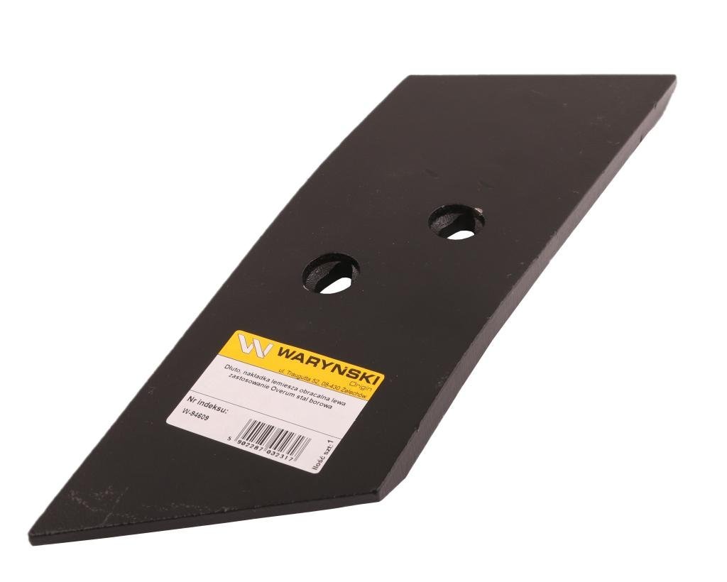 Dłuto, nakładka lemiesza obracalna lewa zamiennik Overum stal borowa WARYŃSKI Części robocze marki WARYŃSKI wykonane są z niezwykle wytrzymałej i odpornej na ścieranie stali borowej pochodzącej z europejskich hut. Każda, nawet najmniejsza dostawa, posiada dołączony certyfikat potwierdzający skład materiałowy. Stal borowa posiada właściwości szczególnie przydatne w zastosowaniach konstrukcyjnych wymagających dużej wytrzymałości. Połączenie wysokogatunkowej stali borowej, monitorowanego procesu obróbki cieplnej oraz skrupulatna kontrola jakości produktów WARYŃSKI to gwarancja wydłużonego okresu eksploatacji. Produkty WARYŃSKI to oszczędność kosztów związanych z powolnym ścieraniem i zużyciem części roboczych. W trosce o trwałość naszych produktów oraz zadowolenie klientów proces produkcji lemieszy WARYŃSKI nie zakłada operacji spawania. Wszystkie rodzaje otworów są wykonane w specjalny sposób minimalizujący naprężenia oraz zmniejszający ryzyko pęknięć.