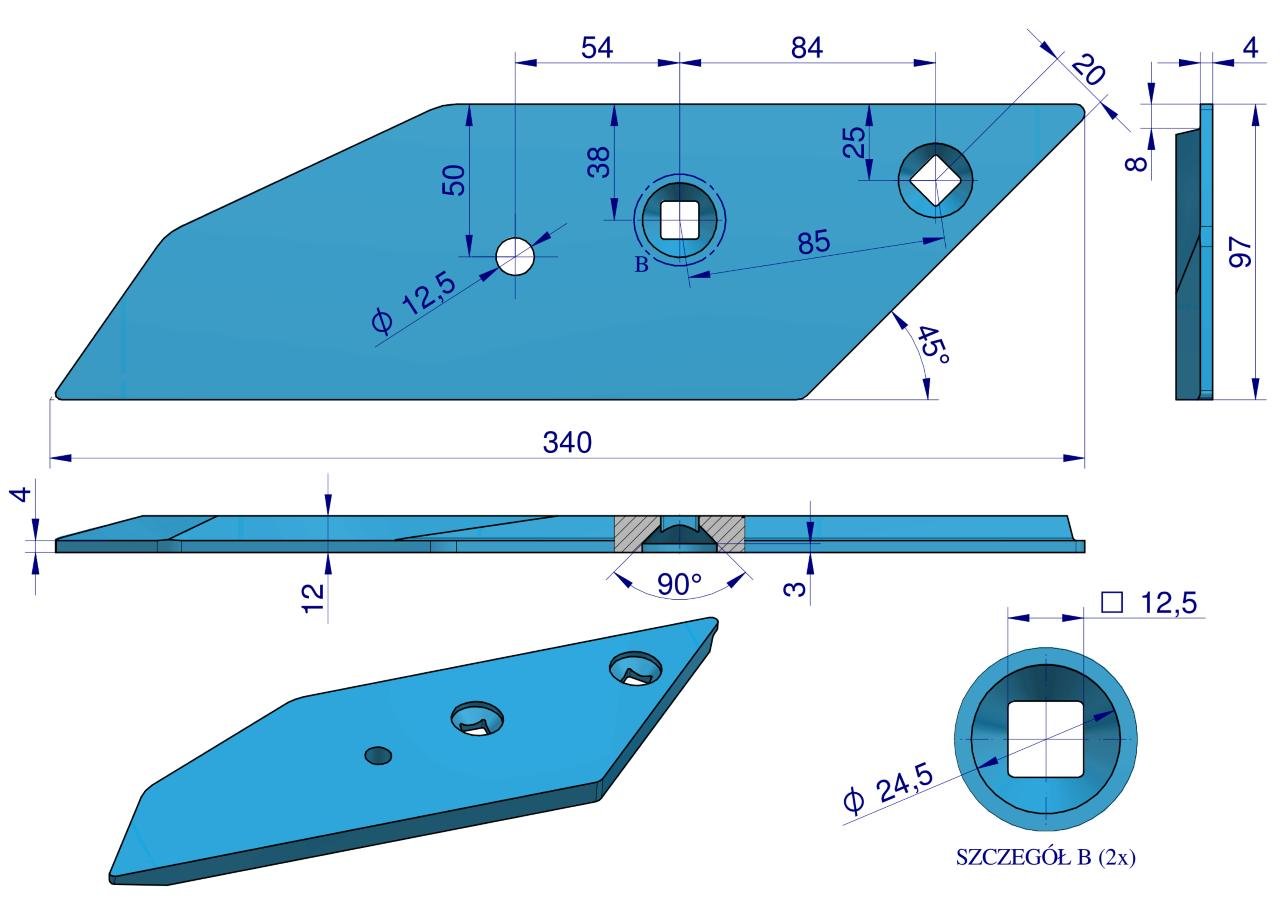 ŚRUBY WSPÓŁPRACUJĄCE:2 x W-608101235Dłuto, nakładka lemiesza prawa zamiennik Lemken Pług stal borowa WARYŃSKI Części robocze marki WARYŃSKI wykonane są z niezwykle wytrzymałej i odpornej na ścieranie stali borowej pochodzącej z europejskich hut. Każda, nawet najmniejsza dostawa, posiada dołączony certyfikat potwierdzający skład materiałowy. Stal borowa posiada właściwości szczególnie przydatne w zastosowaniach konstrukcyjnych wymagających dużej wytrzymałości. Połączenie wysokogatunkowej stali borowej, monitorowanego procesu obróbki cieplnej oraz skrupulatna kontrola jakości produktów WARYŃSKI to gwarancja wydłużonego okresu eksploatacji. Produkty WARYŃSKI to oszczędność kosztów związanych z powolnym ścieraniem i zużyciem części roboczych. W trosce o trwałość naszych produktów oraz zadowolenie klientów proces produkcji lemieszy WARYŃSKI nie zakłada operacji spawania. Wszystkie rodzaje otworów są wykonane w specjalny sposób minimalizujący naprężenia oraz zmniejszający ryzyko pęknięć.