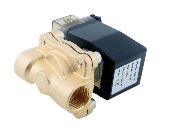 Elektrozawór 2N15 1/2″ 24V DC N.C. (normalnie zamknięty) EPDM bezpośredniego działania. W komplecie jest cewka i wtyczka z diodą. Do otwarcia lub zamknięcia zaworu nie jest wymagana żadna różnica ciśnień między wejściem a wyjściem. Elektrozawór zamontowany w linii układu (powietrze, woda, gazy, lekkie oleje) jest zamknięty, dopiero po otrzymaniu impulsu eletrycznego za pośrednictwem cewki otwiera przepływ cieczy (zamykanie/otwieranie – zasada działania podobna do zaworu kulowego).