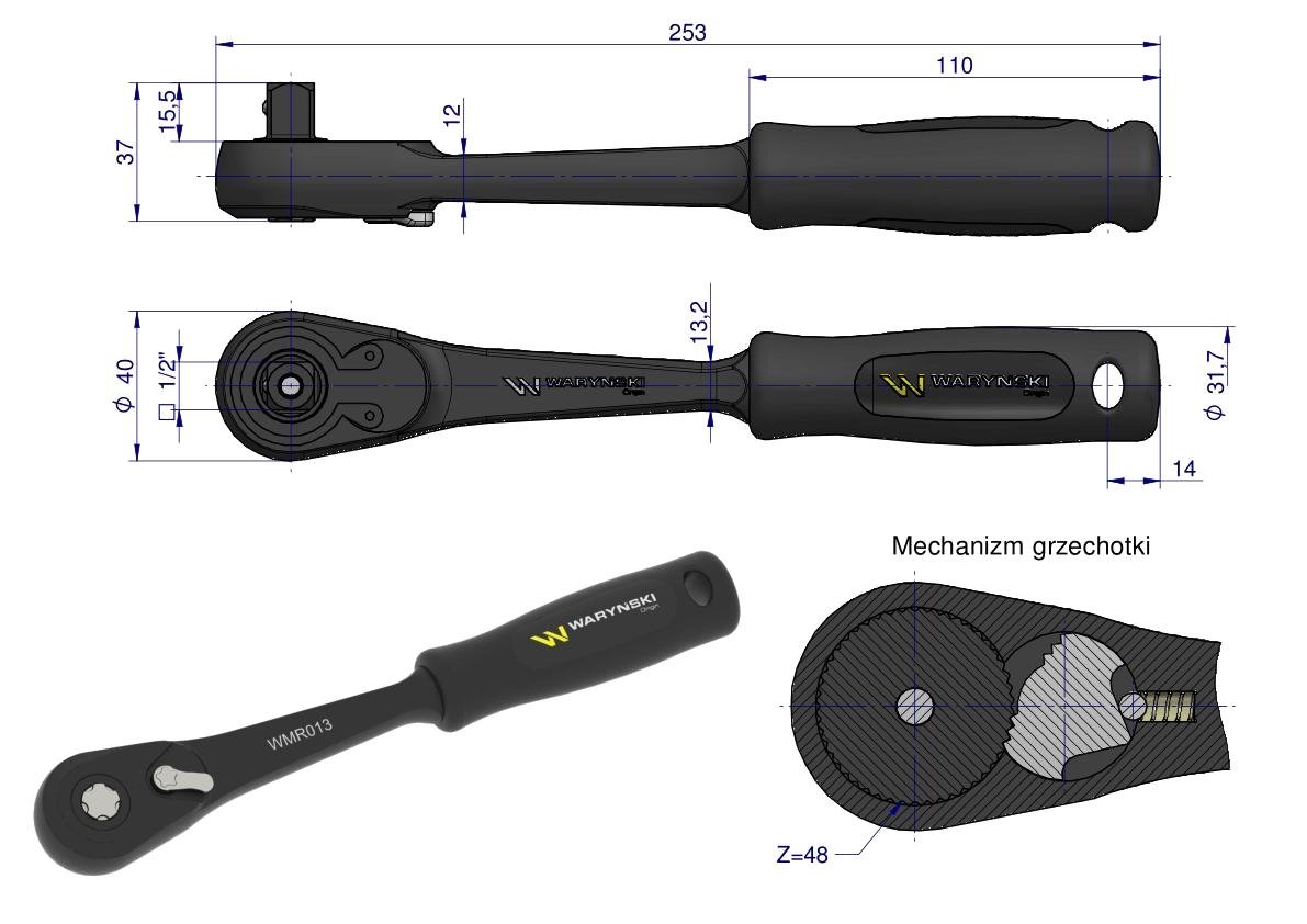 Grzechotka 1/2″. 48 T, monolityczny zabierak Waryński [WMR013]