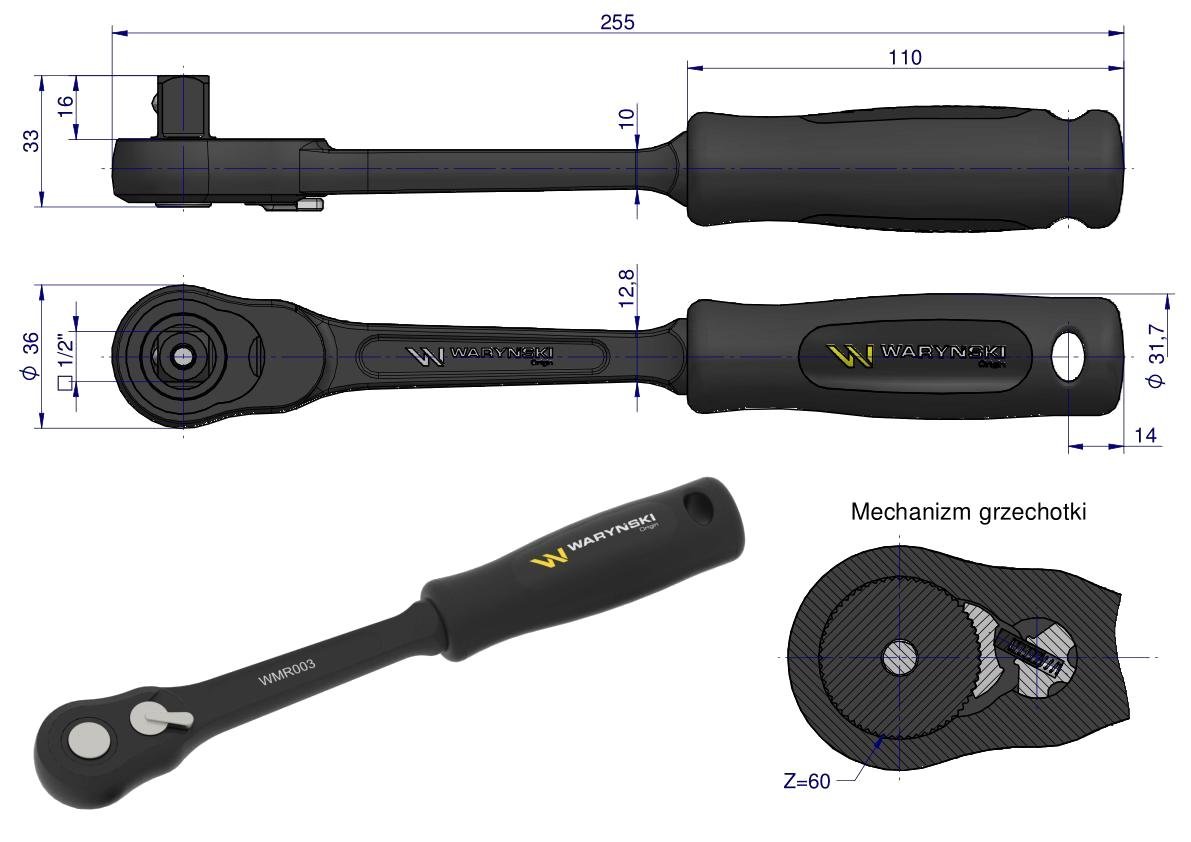 Grzechotka 1/2″. 60 T, o zwiększonej odporności. Waryński [WMR003]