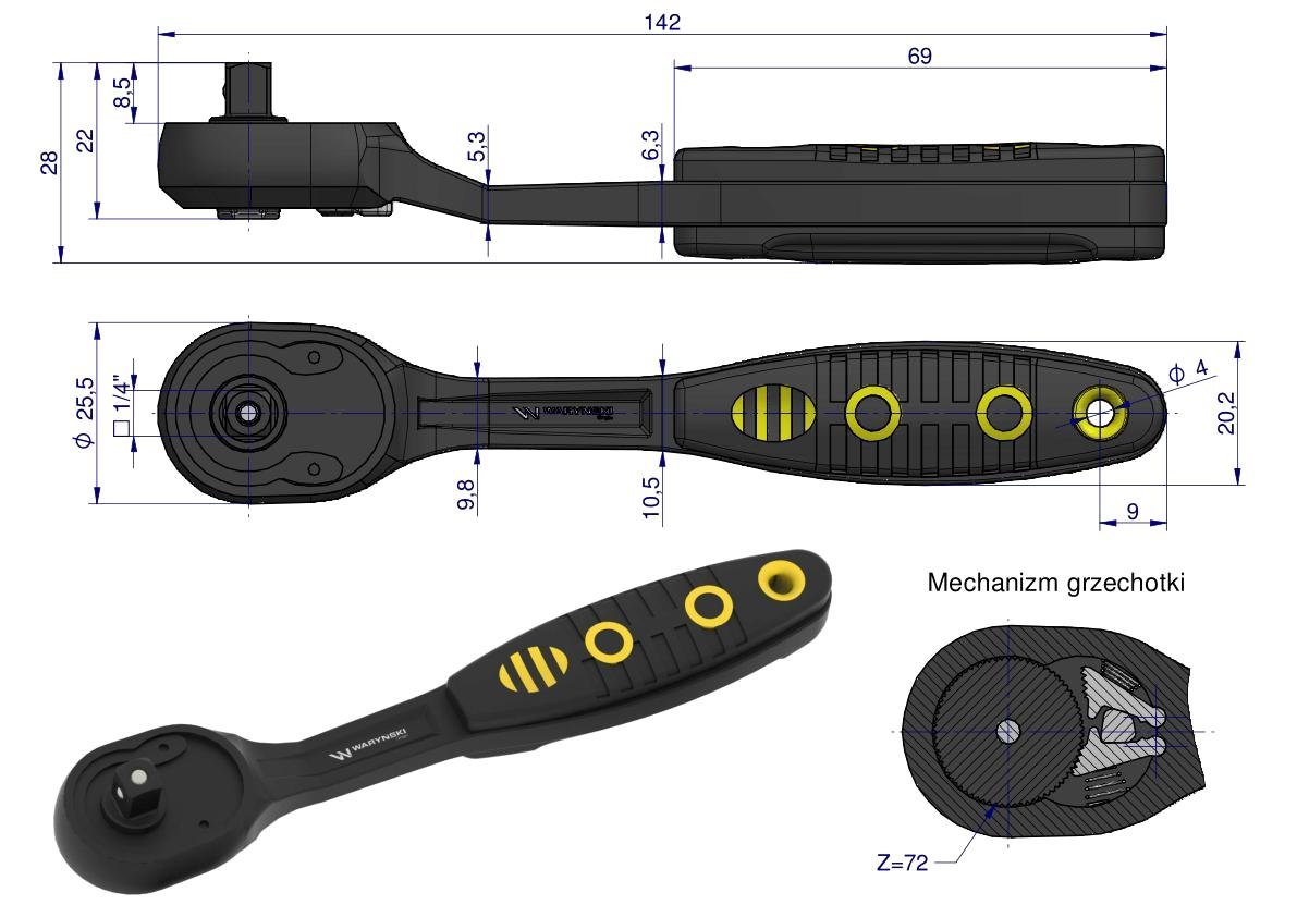 Grzechotka 1/4 ze wzmocnionym mechanizmem zapadkowym