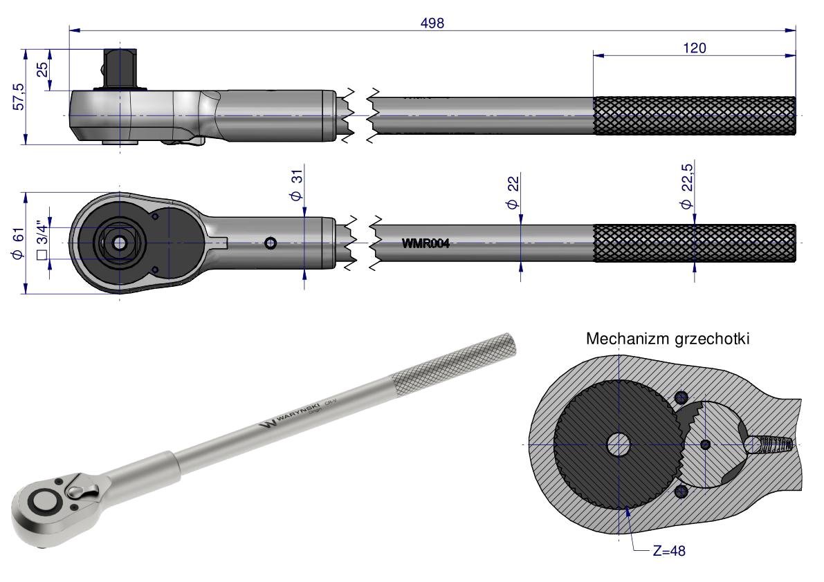 Grzechotka 3/4″. 48 T. o zwiększonej odporności. Waryński [WMR004]