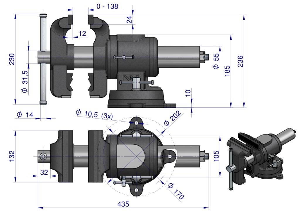 Imadło ślusarskie z żeliwa sferoidalnego obrotowe z obracanym jarzmem 125 mm Waryński [WMI009]