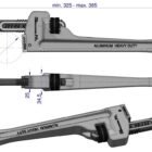 Klucz do rur typ amerykański 14″ wzmocniony aluminiowy korpus szczęki ze stali CrMo maksymalny zakres roboczy szczęk 60 mm Waryński