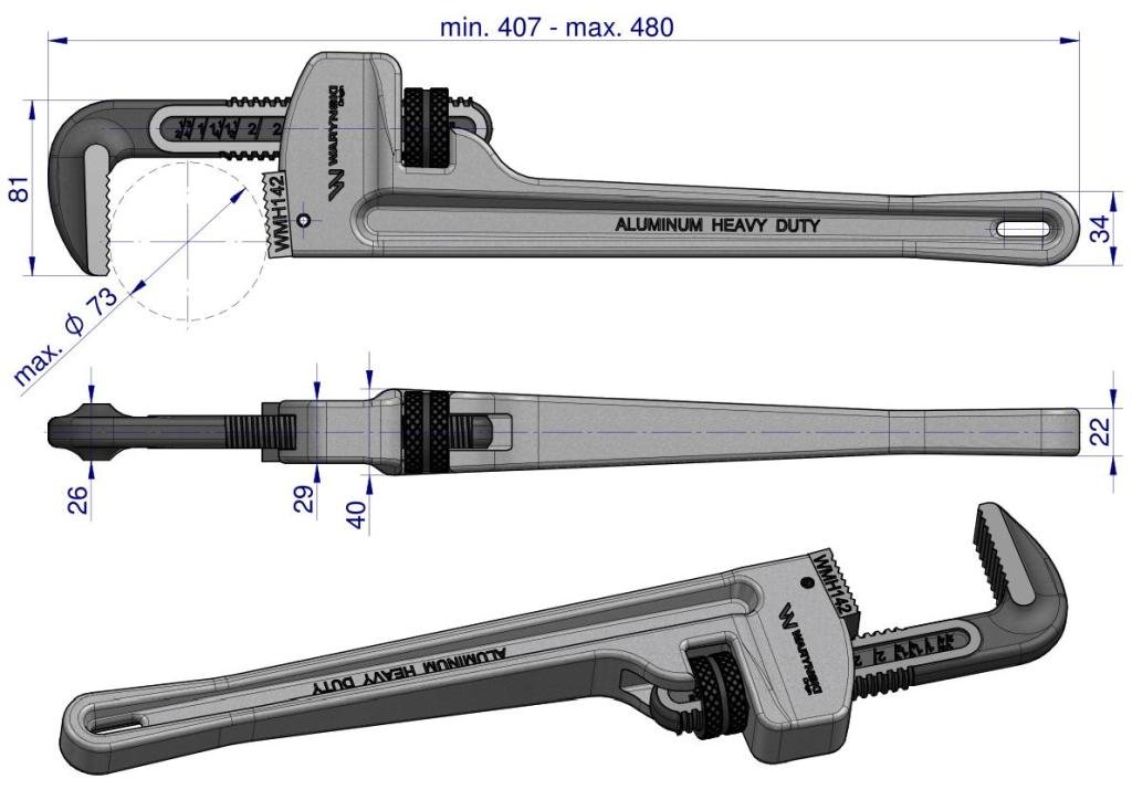Napisz pierwszą opinię o „Klucz do rur typ amerykański 18″ uchwyt aluminium wzmocniony szczęki CrMo max średnica Waryński [WMH142]”