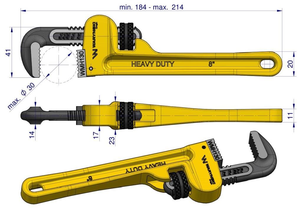 Napisz pierwszą opinię o „Klucz do rur typ amerykański 8″ wzmocniony szczęki CrMo max średnica 30 mm Waryński [WMH130]”