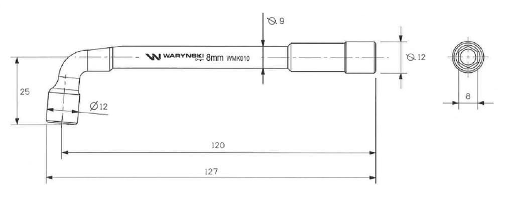Klucz fajkowy 8 mm dwunastokątny ze stali CrV Waryński