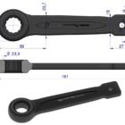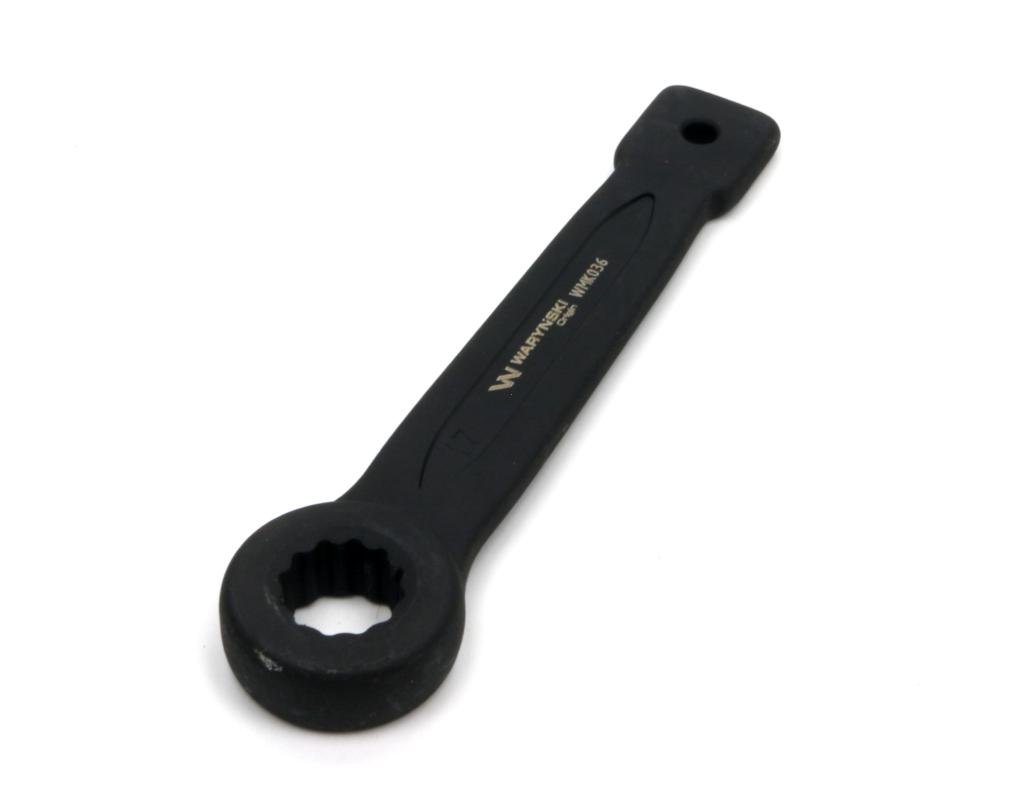 Klucz oczkowy 17 mm do pobijania ze stali wysokoudarnej CrMo wykonany w standardzie DIN7444 z kowadełkiem do uderzania na trzonku klucza Waryński