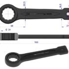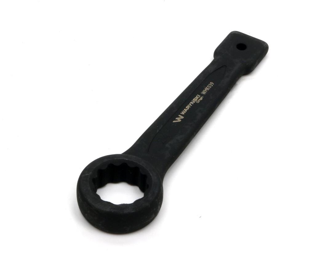 Klucz oczkowy 24 mm do pobijania ze stali wysokoudarnej CrMo wykonany w standardzie DIN7444 z kowadełkiem do uderzania na trzonku klucza Waryński