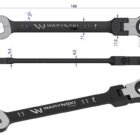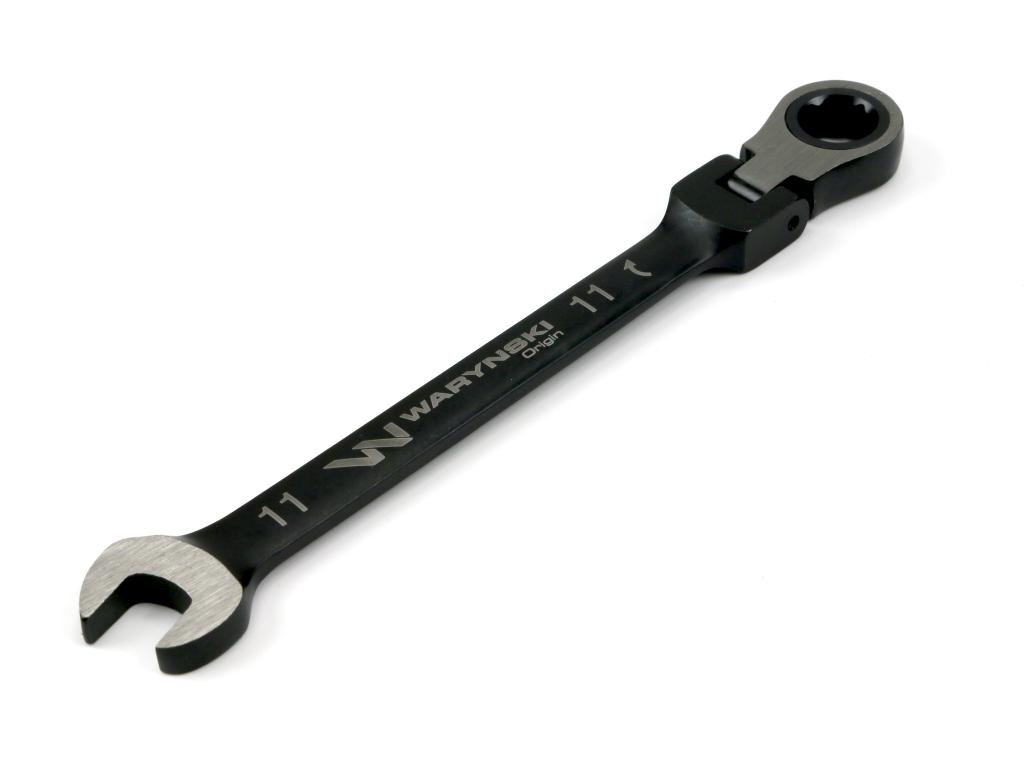 Klucz płasko-oczkowy 11 mm z grzechotką 72 zęby i przegubem Waryński stosowany w mechanice i serwisowaniu urządzeń. Standard AMSE B.107-2010 charakteryzuje się większą długością i spełnianiem parametrów odporności na moment obrotowy zgodny z normą.