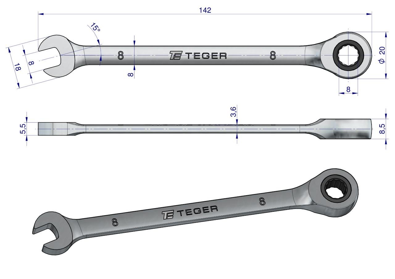 Klucz płasko-oczkowy z grzechotką 8 mm / TEGER [T-W-NWKPOG8]