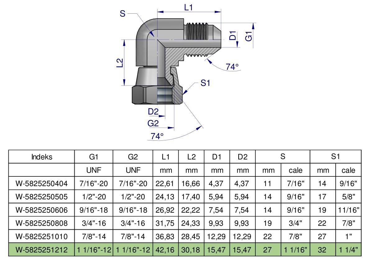 Kolanko hydrauliczne calowe AB 1 1/16″ UNF (JIC) Waryński [W-5825251212]