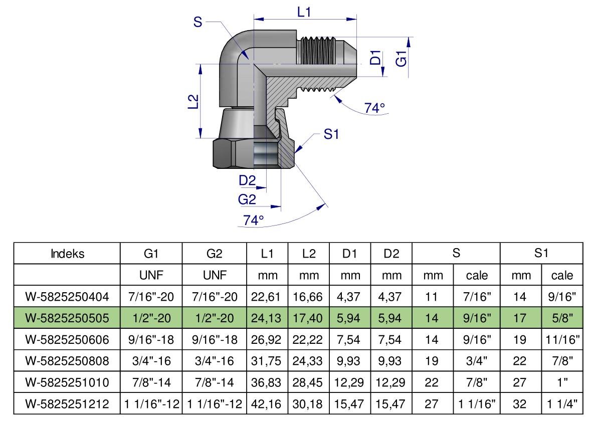 Kolanko hydrauliczne calowe AB 1/2″ UNF (JIC) Waryński [W-5825250505]