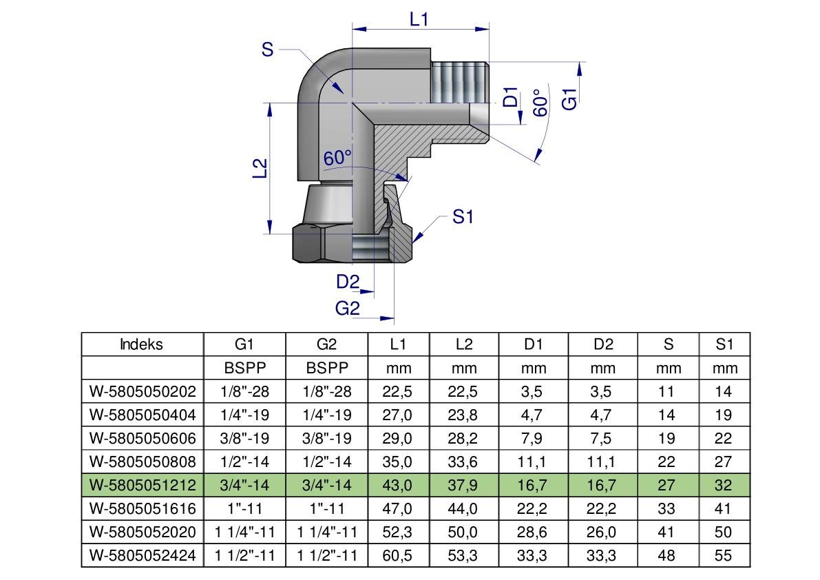 Kolanko hydrauliczne calowe AB 3/4″ BSP Waryński. Elementy złączne zostały zaprojektowane i wykonane zgodnie z obowiązującymi normami, które szczegółowo opisują wymagania jakościowe i wymiarowe. Są kompatybilne z elementami złącznymi innych renomowach producentów hydrauliki siłowej.