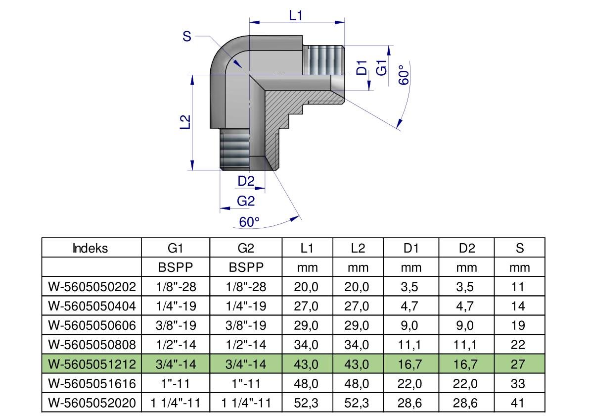 Kolanko hydrauliczne calowe BB 3/4″ BSP (XW) Waryński. Elementy złączne zostały zaprojektowane i wykonane zgodnie z obowiązującymi normami, które szczegółowo opisują wymagania jakościowe i wymiarowe. Są kompatybilne z elementami złącznymi innych renomowach producentów hydrauliki siłowej.