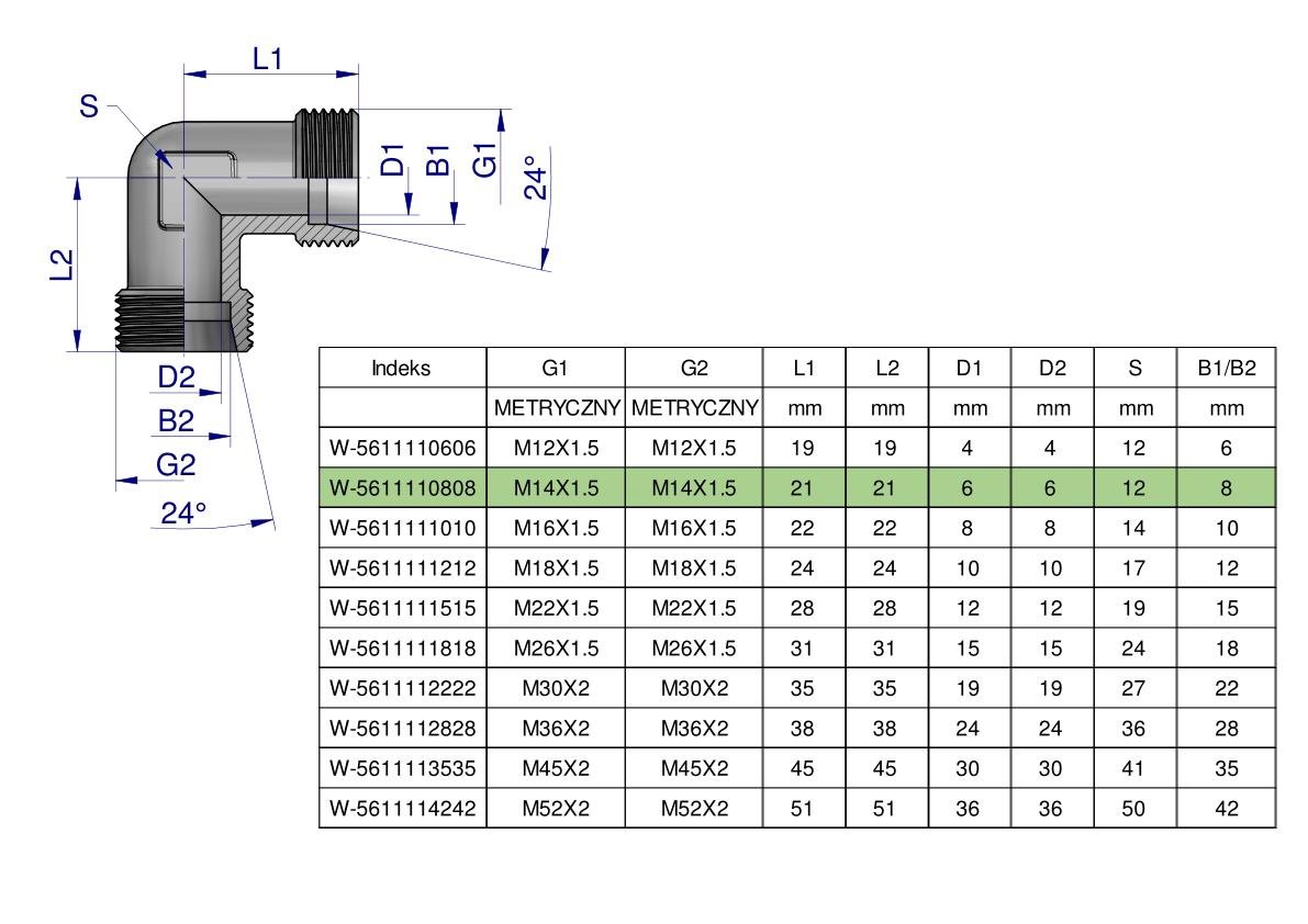 Kolanko hydrauliczne metryczne BB M14x1.5 08L (XW) Waryński ( sprzedawane po 5 ) [W-5611110808]
