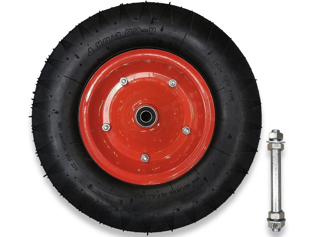 Koło do taczki kompletne 4.00-8 felga 1.2 mm wzmocnione 4PR plus oś grubości 12 mm [KOLO 4.00-8/4PR]