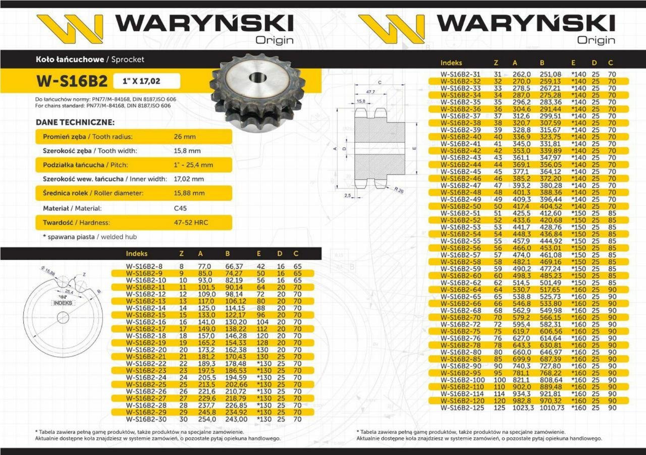 Odpowiedniew do łańcuchów normy PN77/M-84168, DIN 8187,ISO 606