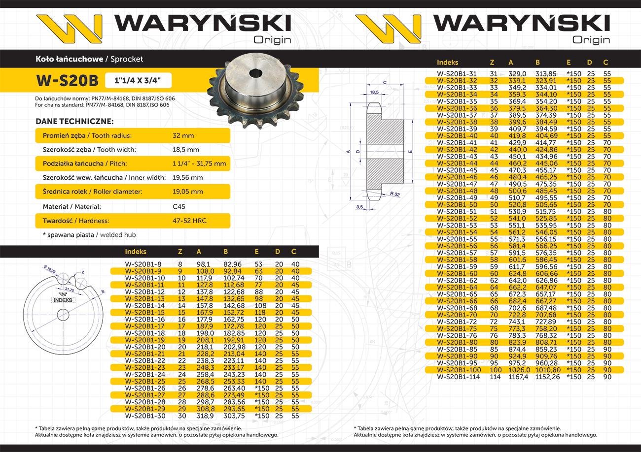 Koło zębate hartowane z kołnierzem 20B-1 (R1 1.1/4) Z-25 Waryński