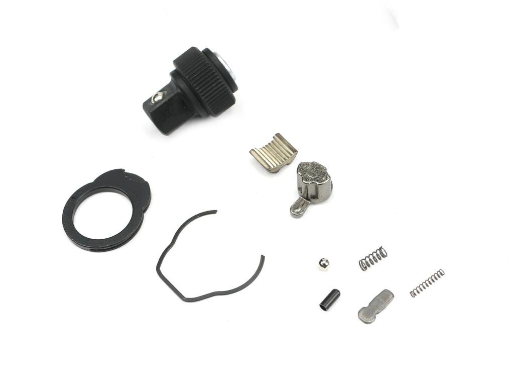 Komplet naprawczy do grzechotki 3/8 WMR002 Waryński złożony z koła zębatki głównej z kulką, zębatej kształtki roboczej, dźwigni zmiany kierunku, pierścienia zabezpieczającego, spreżynki , kołeczka sprężynującego, sprężynowego drutu mocującego