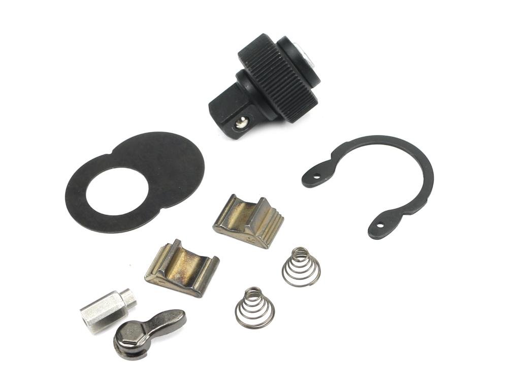 Komplet naprawczy do grzechotki 3/8 WMR009 Waryński złożony z koła zębatki głównej z kulką, 2 szt. zębatych kształtek roboczych, dźwigni zmiany kierunku, pierścienia mocującego, pierścienia zabezpieczającego, 2 szt. spreżynek, kołeczka sprężynującego, sprężynowego drutu mocującego, trzpienia ustalającego