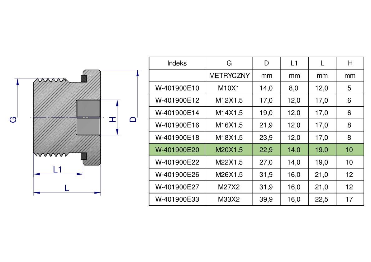 Korek hydrauliczny metryczny (na imbus) M20x1.5 ED Waryński. Elementy złączne zostały zaprojektowane i wykonane zgodnie z obowiązującymi normami, które szczegółowo opisują wymagania jakościowe i wymiarowe. Są kompatybilne z elementami złącznymi innych renomowach producentów hydrauliki siłowej.
