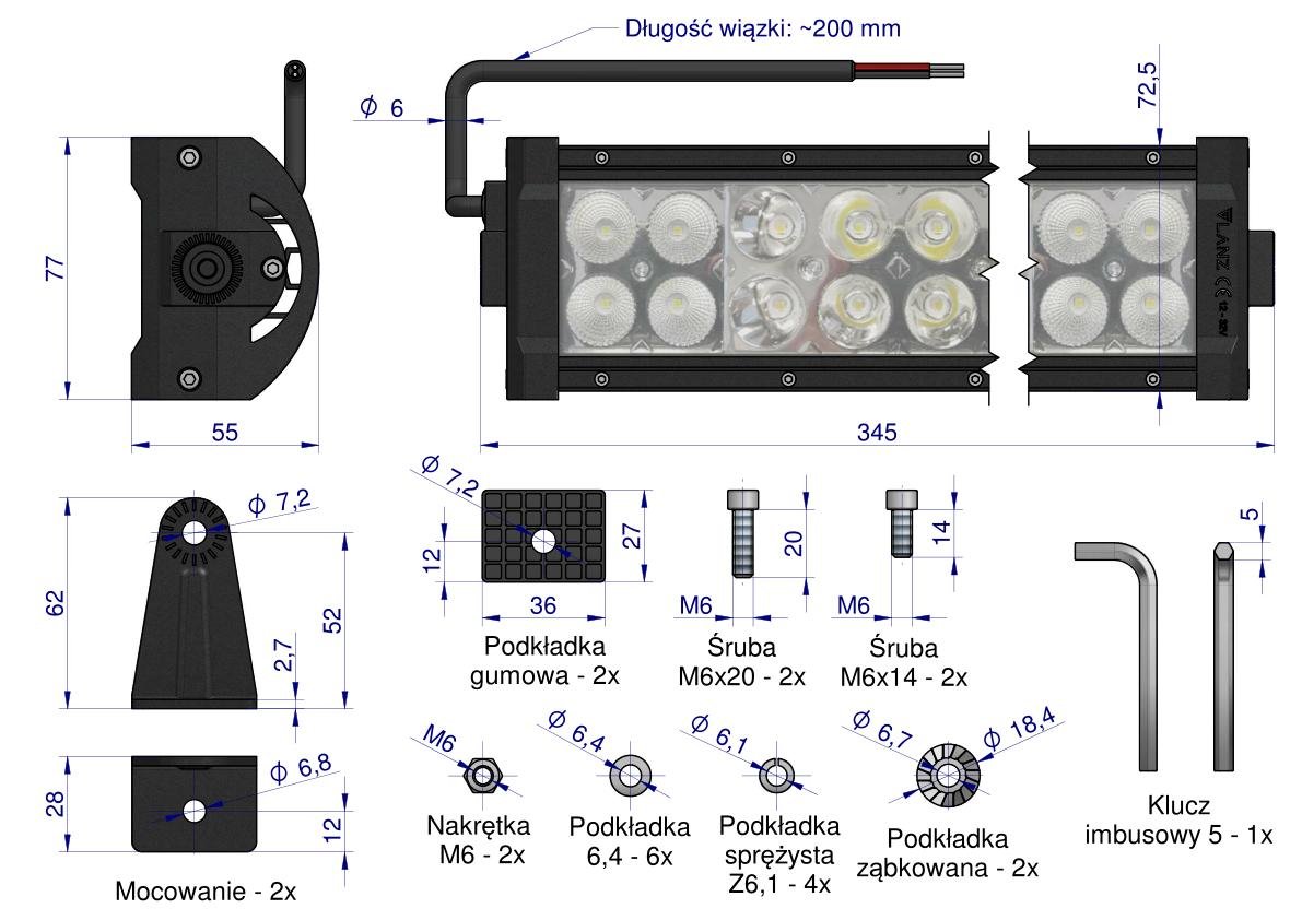 Napisz pierwszą opinię o „Lampa robocza prostokątna 72W 24 LED GLANZ [L0119G]”