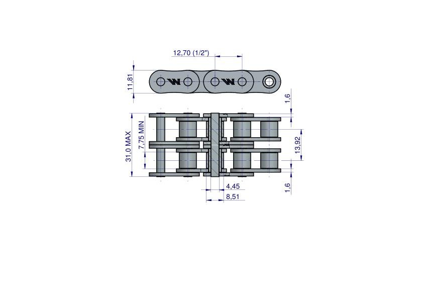Łańcuch rolkowy, Galla dwurzędowy, napędowy, calowy.