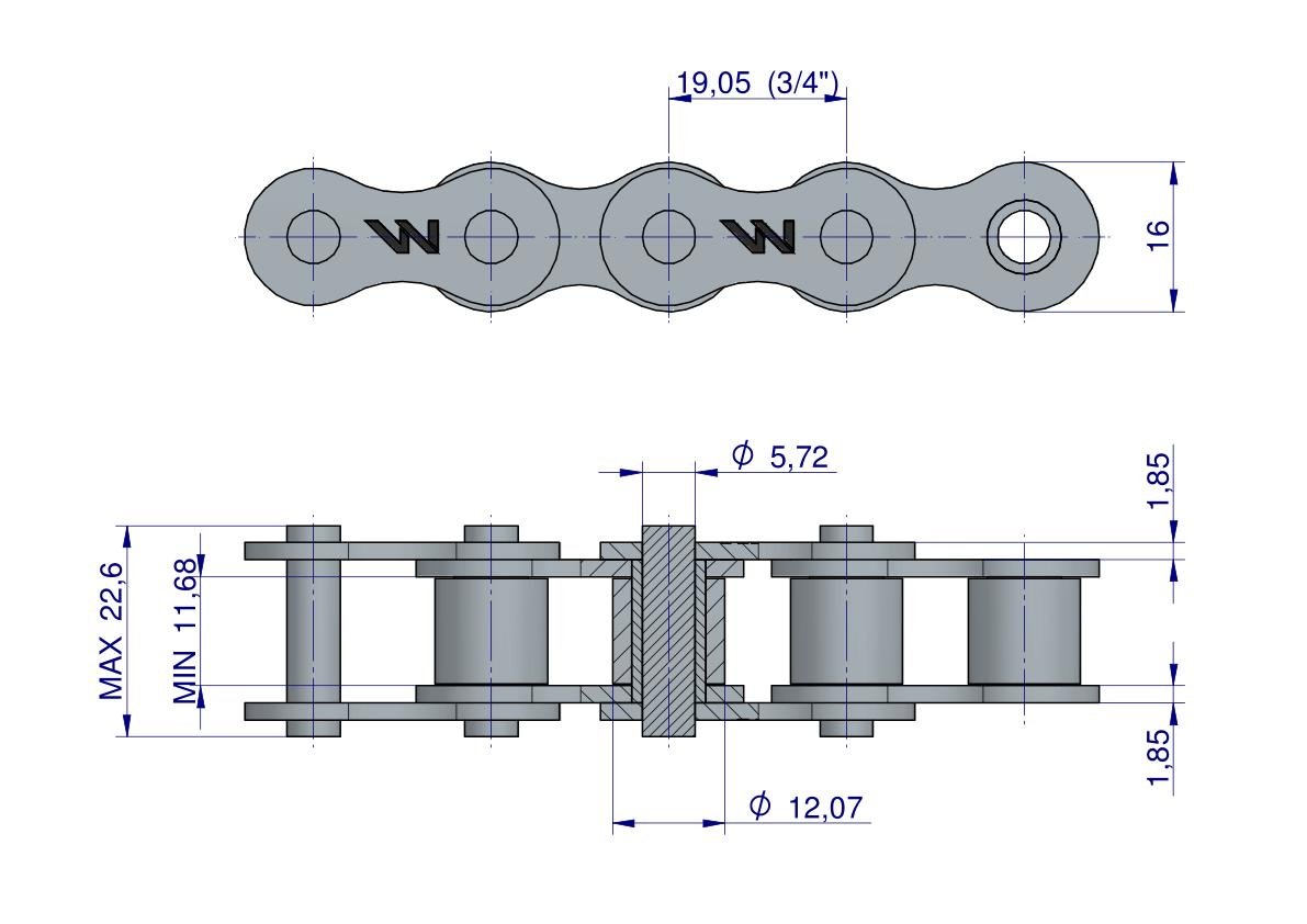 Łańcuch rolkowy, Galla jednorzędowy, napędowy, calowy.