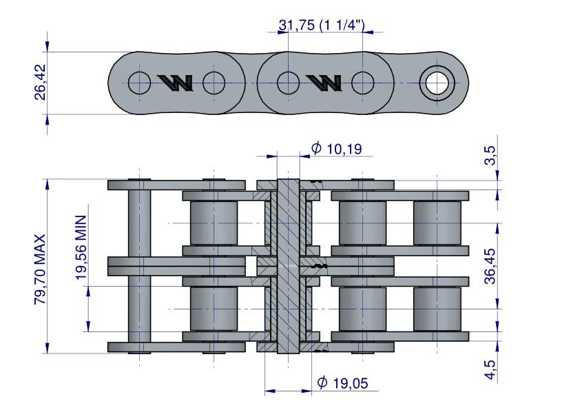 Łańcuch rolkowy, Galla dwurzędowy, napędowy, calowy.