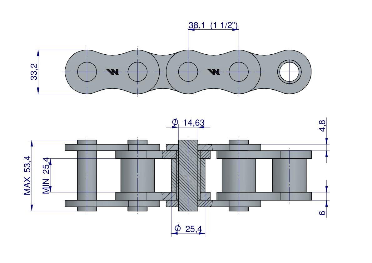 Łańcuch rolkowy, Galla jednorzędowy, napędowy, calowy.