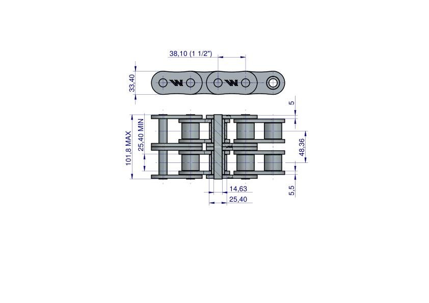 Łańcuch rolkowy, Galla dwurzędowy, napędowy, calowy.