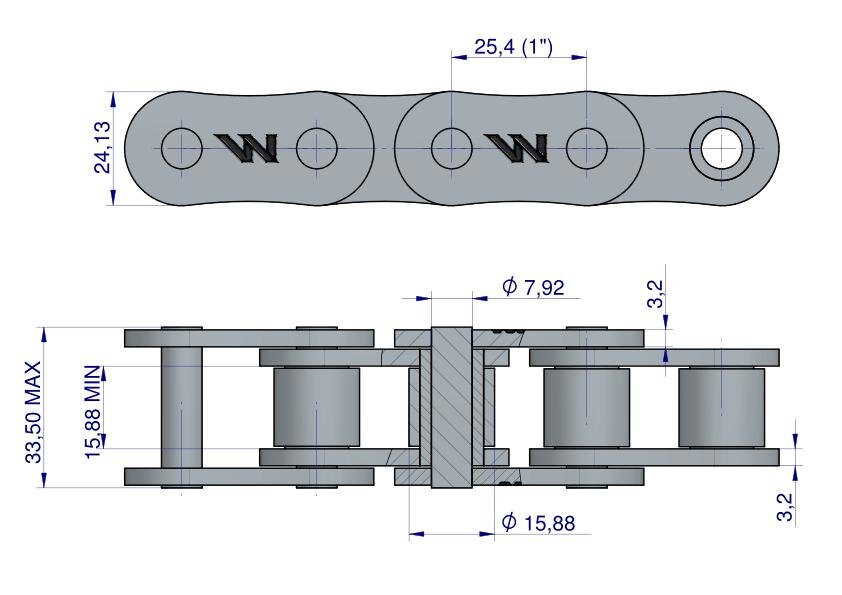 Łańcuch rolkowy, Galla jednorzędowy, napędowy, calowy.