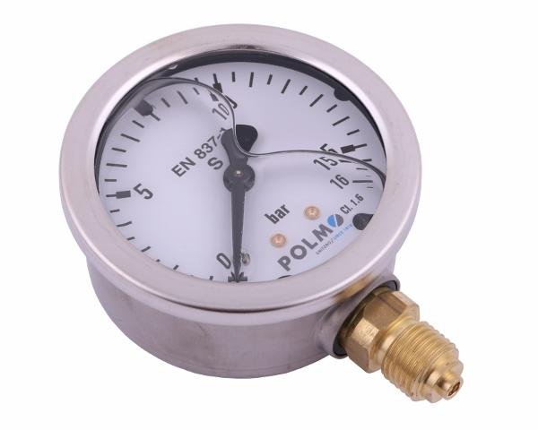 Manometr glicerynowy M63 0-16 bar dolne przyłącze G1/4″ POLMO [MGH63KG14D16P]