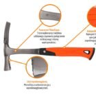 Młotek murarski monoblock (typ Berliński) 600 g Extreme / TEGER przeznaczony do podstawowych prac murarskich, wbijanie, pobijanie, podkuwanie, łupanie i podcinanie. Monolityczna konstrukcja młotka, obuch oraz trzonek wykonane z jednego kawałka wysokogatunkowej, hartowanej stali węglowej, zadba o jakość i ergonomię pracy zarówno profesjonalistów jak i domowych majsterkowiczów. Obuch młotka zakończony szerokim ostrzem wyposażony w nacięcie do wyciągania gwoździ.