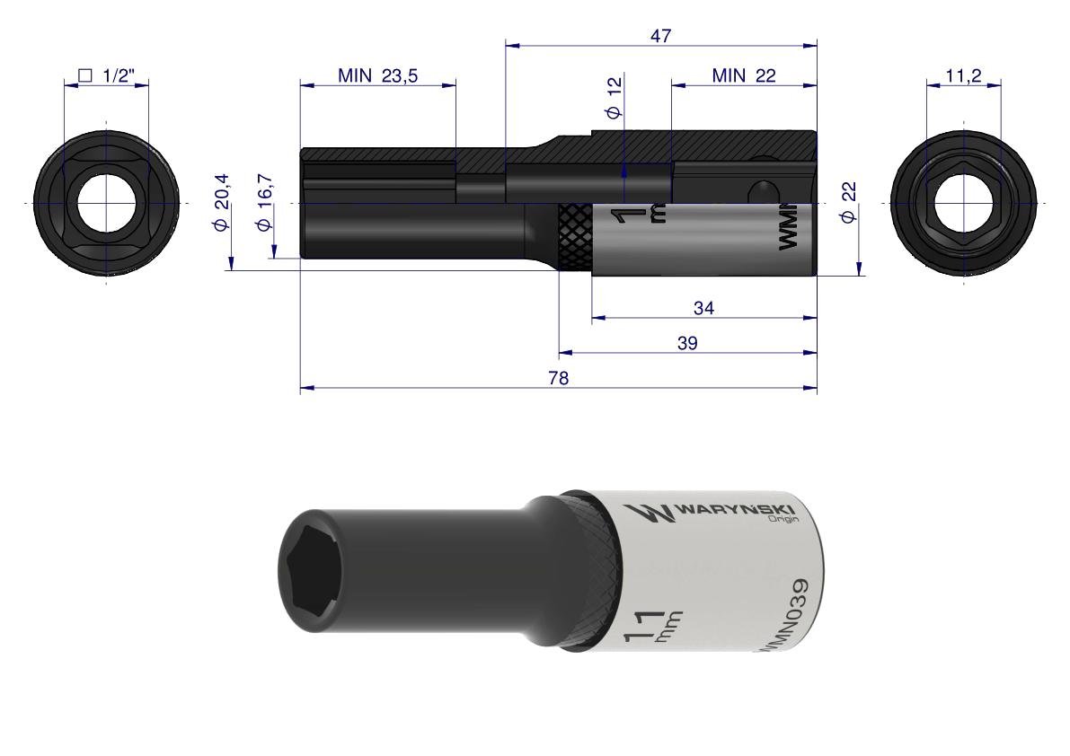 Nasadka sześciokątna 1/2″. 11 mm. długa. CrV50BV30. DIN 3124. Waryński [WMN039]