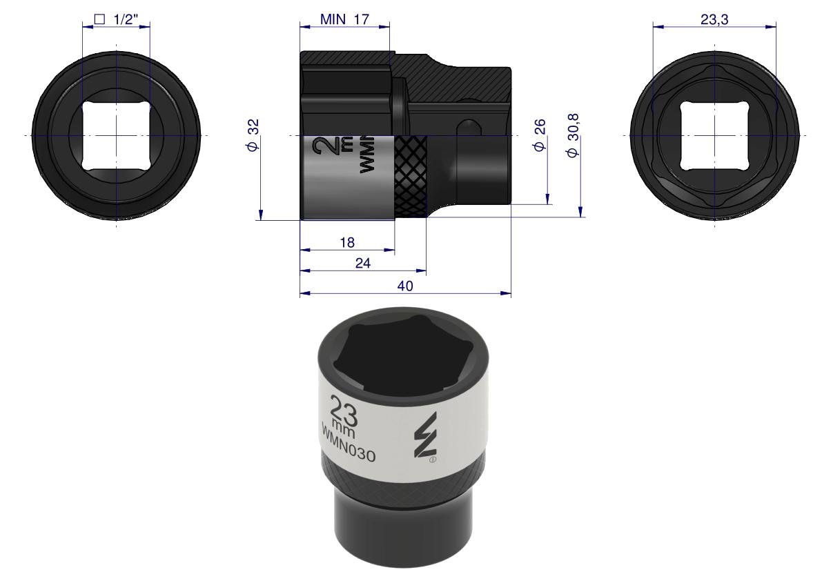 Napisz pierwszą opinię o „Nasadka sześciokątna 1/2″. 23 mm. CrV50BV30. DIN 3124. Waryński [WMN030]”