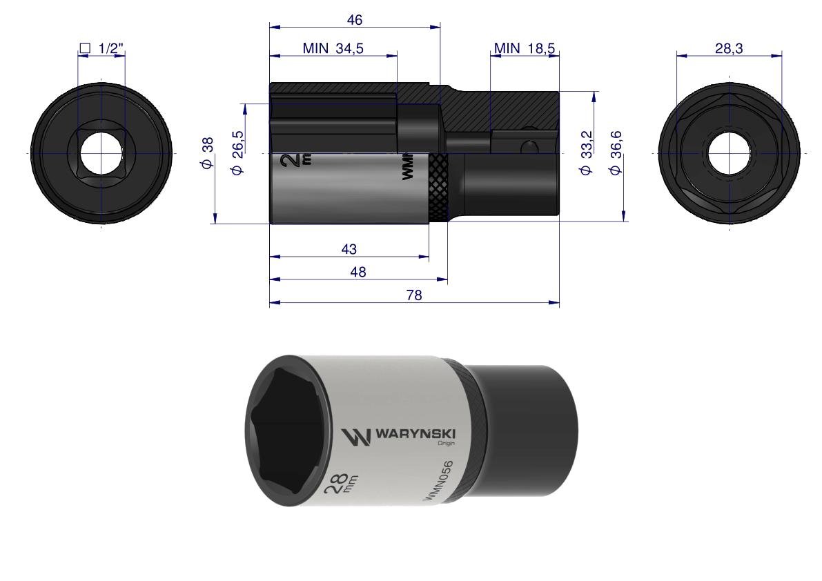 Nasadka sześciokątna 1/2″. 28 mm. długa. CrV50BV30. DIN 3124. Waryński [WMN056]