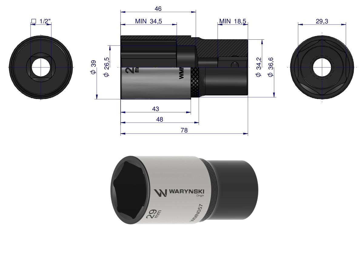 Napisz pierwszą opinię o „Nasadka sześciokątna 1/2″. 29 mm. długa. CrV50BV30. DIN 3124. Waryński [WMN057]”