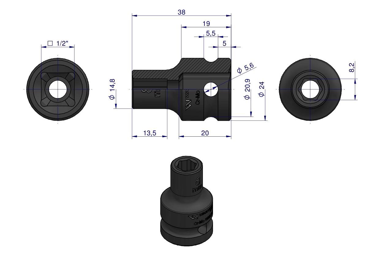Nasadka udarowa sześciokątna 1/2″. 8 mm. CrMo. DIN 3129. Waryński [WMU001]