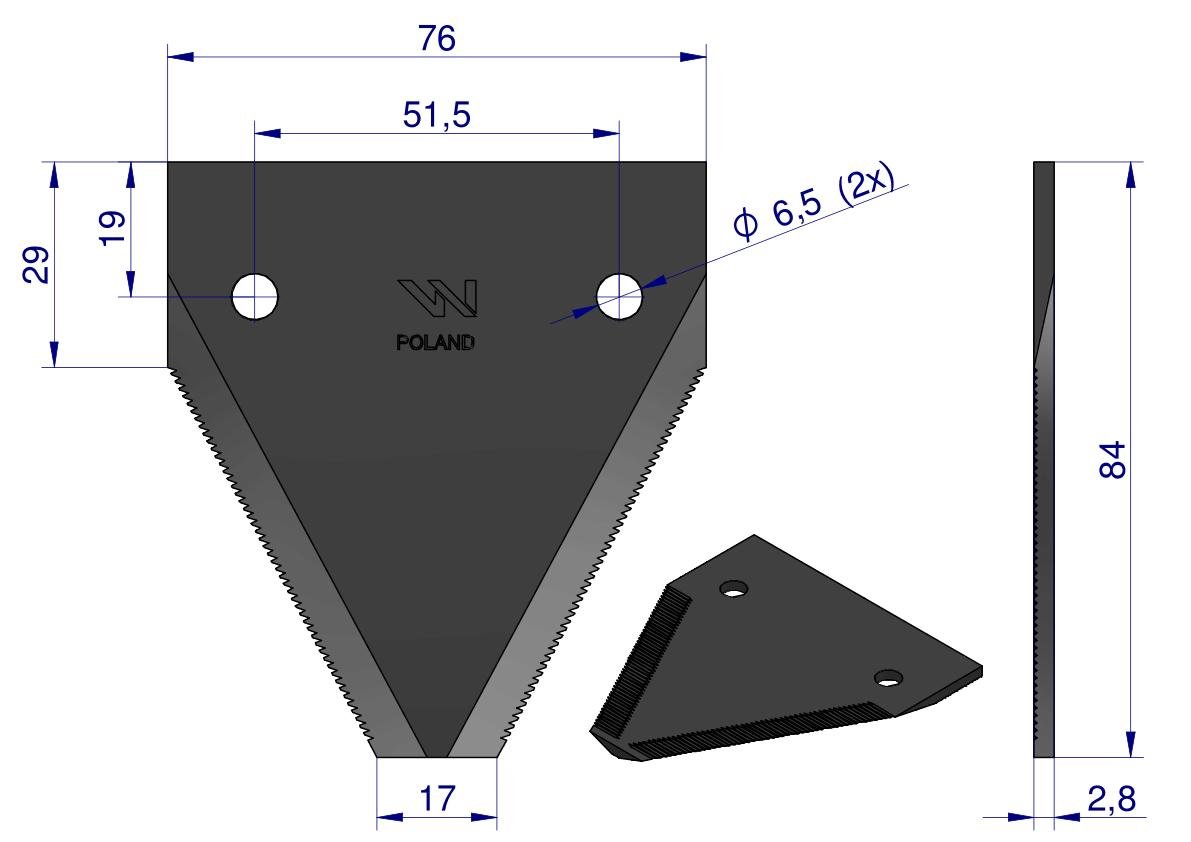 Nóż, nożyk dolno nacinany zastosowanie 611316.0 Claas WARYŃSKI ( sprzedawane po 25 ) [WKZ84X2.8]