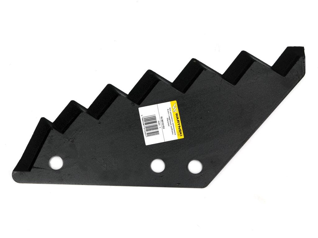Noże do Wozu Paszowego Waryński. Wysokiej jakości noże do paszowozów z hartowanym ostrzem i dodatkowym napawaniem. Wykonane ze starannie dobranego gatunku stali wysokowęglowej Ostrza poddane obróbce cieplnej osiągają wysoką twardość – 55HRC Nóż pokryty trudnościeralnym napawaniem, charakteryzującym się dużą odpornością na ścieranie. Noże marki Waryński gwarantują dużą dokładność cięcia przez długi okres eksploatacji.