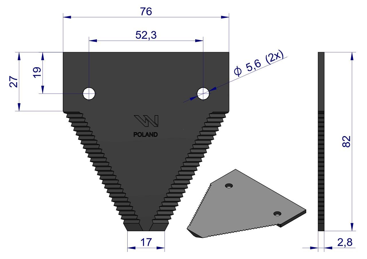 Nóż żniwny ostrza ząbkowane na wierzchu listwa nożowa zastosowanie 80365110 New Holland WARYŃSKI ( sprzedawane po 25 ) [WKZ82X2.8]